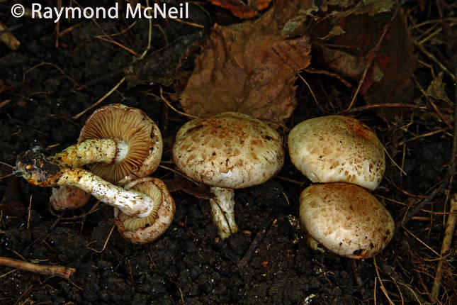 Láminas adherentes, amarillentas, con tendencia a pardear. Pie con tonalidad parda en la base. Carne delgada, de color cremoso. Esporada ocrácea.