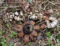 Exoperidio higroscópico, se cierra con sequía y se abre con humedad, mostrando 8-9 brazos o lacinias, en forma de estrella, superficie algo agrietada y con arena en el exterior, color pardo, tendiendo a oscurecer.