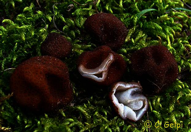Carpóforo semi-hipogeo, irrregularmente globoso 1-3, aplastado, hueco, lobulado, aspecto de bombón desinflado, aparentemente cerrado (pero sale un orificio en cualquier parte), muy velludo de joven.