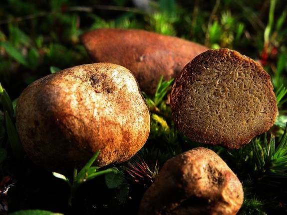 Gleba laberíntica conteniendo cavidades alargadas e irregulares, color blanco puro (al rato tras un corte, vira ligeramente a parduzco).