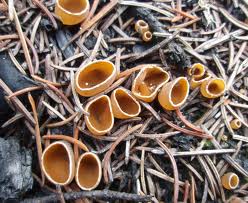 “Geopyxis” en griego = caja de tierra (pues sale semienterrada). “Carbonaria” en latín = carbonero (sale en carbón).