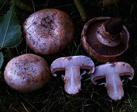 Láminas color rosa-carne, virando a rosa-sucio y pardo-chocolate.