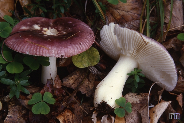 Cutícula rosa-lila (se decolora fácilmente), con el borde del sombrero más claro (casi blanco).
